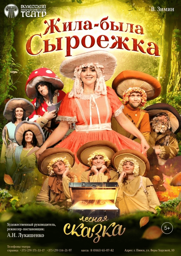 Для юных зрителей Полесский театра предлагает 25 октября в 12.00 спектакль «Жила-была Сыроежка». Настоящая детективная история однажды произошла на лесной полянке, где после дождика родились грибы. Вредный Мухомор со своими подружками Поганками задумал избавиться от всех съедобных грибов. Он похитил ключ от волшебного сундучка, который управляет дождём. И неизвестно чем бы всё закончилось, если бы не смелость красавицы Сыроежки и ее надёжных друзей.