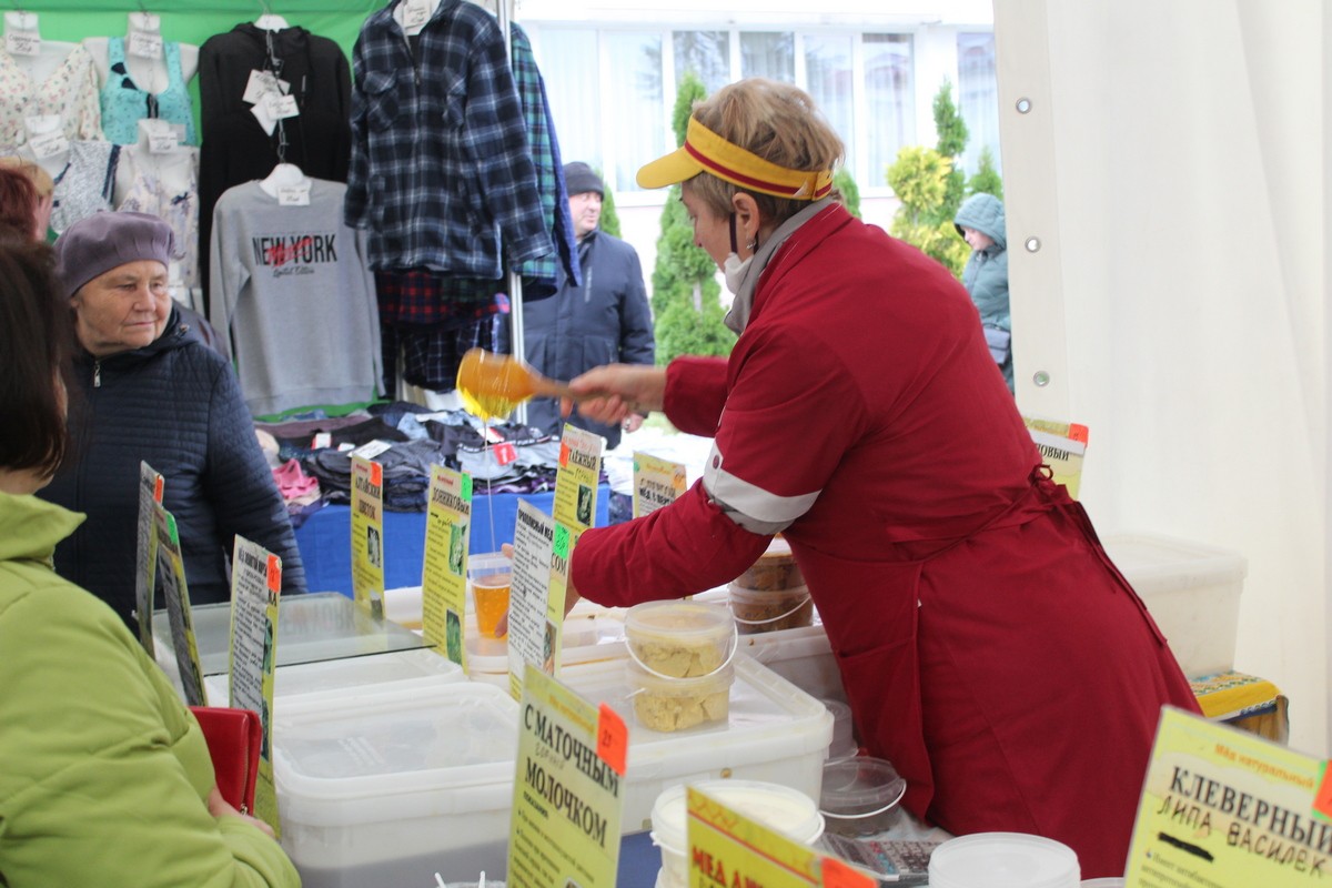 Не удержалась — заглянула на выставку-продажу и побеседовала с продавцами и покупателями. Очереди образовались возле всех прилавков. Когда стало посвободнее, обратились к продавцу меда: