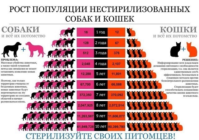Если в ближайшее время ситуация не изменится и количество будет расти, все наши усилия по сохранению их жизни окажутся тщетными. Только объединившись мы сможем решить проблему бездомышей. Кстати одна нестерилизованная собака и ее потомство дает 100 (!) собак, стерилизуя одного, вы спасаете 100.