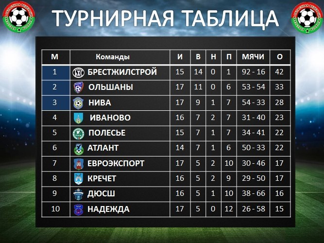 Пинчане отправились в гости в Березу, где встретились с командой под названием «Кречет». Игра получилась с достаточным количеством забитых мячей, однако все они побывали в сетке ворот ФК «Полесье» — на табло были зафиксированы цифры 4:0. Несмотря на поражение, пинские футболисты все еще сохраняют шансы на попадание в тройку призеров.