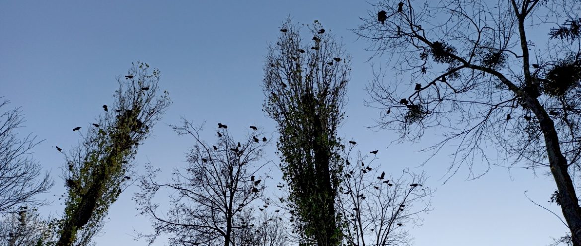 На Первомайской, кроме высоток, галок привлекает аллея пирамидальных тополей. Деревья высокие и они для врановых отличные места гнездования.
