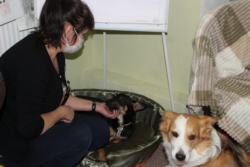У нас собаки из отлова ждут своих новых хозяев. В нашем антикафе всегда находятся одна или две собаки, которые уже обозначили свою территорию, и они не принимают других собак.