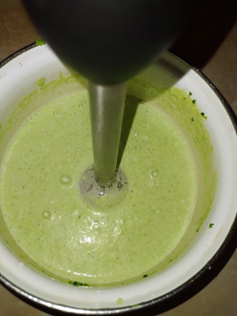 – Готовые брокколи перемалываем в блендере в течение 2-3 минут. Добавляем сливки, соль и продолжаем процесс еще в течение 1-2 минут. Мусс готов.