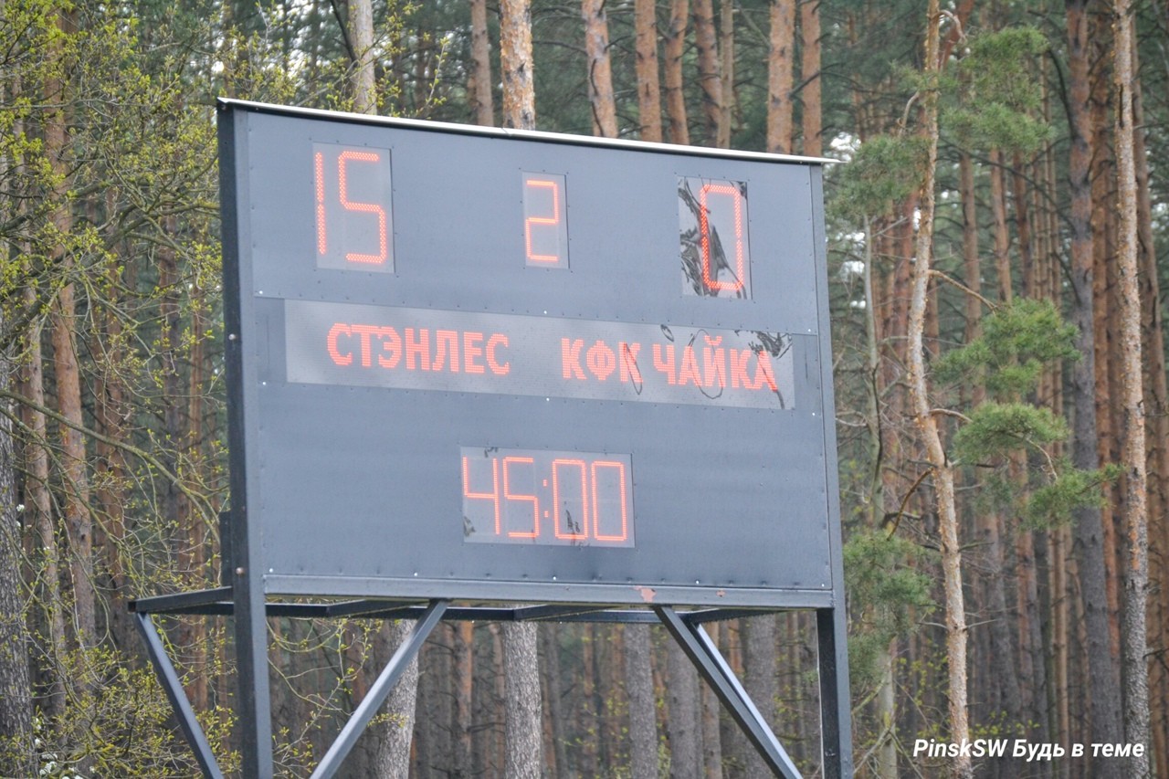 В гости к «Стэнлесу» приехала зельвенская «Чайка». Из-за субботника в небольшом городском посёлке клуб долго не мог найти автобус на выезд, а состав команды оказался неполным и без замен. Пинчане сыграли в своё удовольствие, оформив самую крупную победу чемпионата. 15 безответных мячей влетело в ворота «Чайки». Особенно постарался Дмитрий Малащицкий и Виталий Рушницкий, оба забили по 4 мяча.