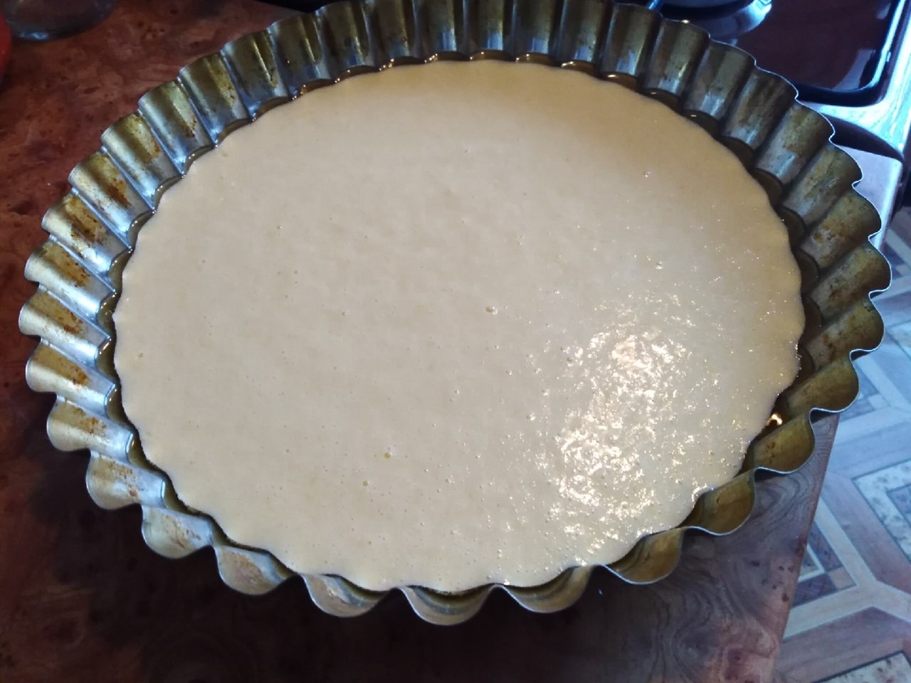 - Добавить растопленное масло и соду с уксусом в смесь, тщательно перемешать. Дать настоятся 10-15 минут, пока греется духовка до 180-200 градусов.