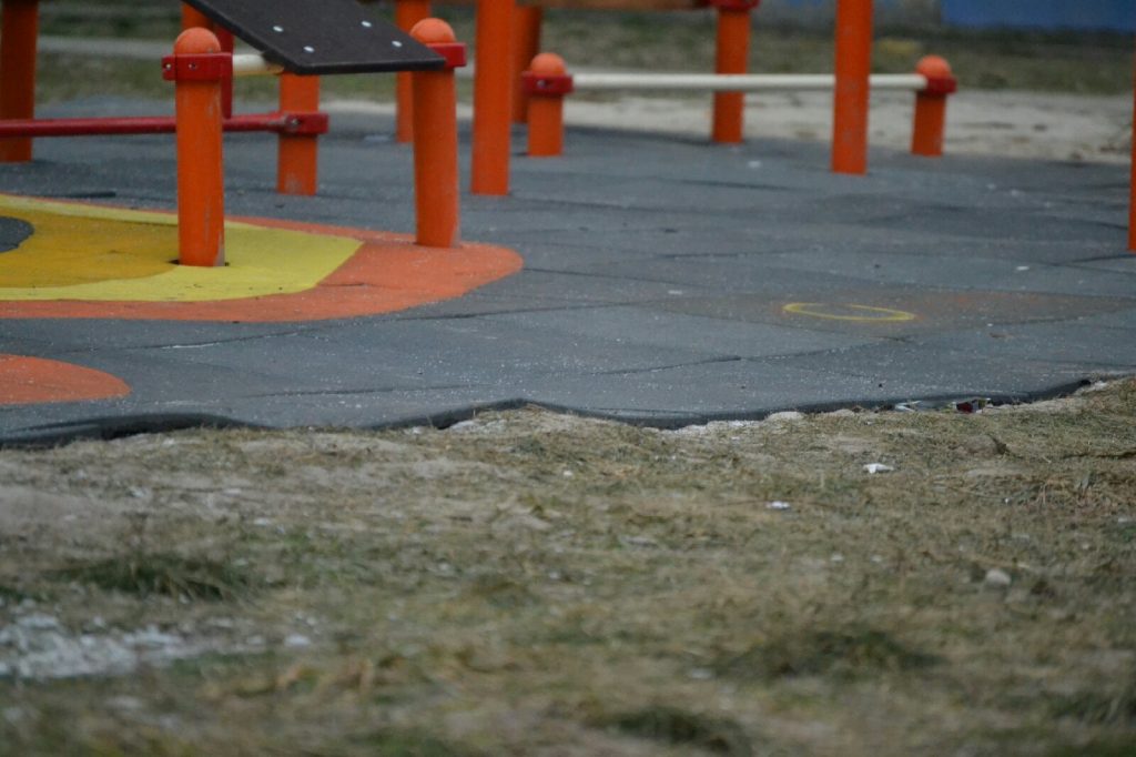 По всему видно, что площадку для установки комплекса для силовых упражнений готовили второпях, неосновательно. Отсюда и неровная укладка покрытия. А со временем грунт еще больше просядет и трансформируется и тут не только лужи будут, но и опасность во время занятий попросту попасть в яму и получить травму.
