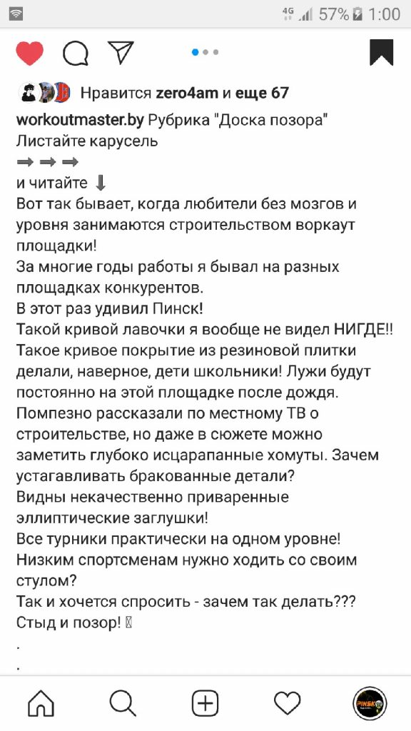 Первыми проблемы с безопасностью заметили в компании WorkoutMaster. Специалисты компании, которая 4 года назад монтировала workout площадку в пинском городском парке, так отозвались об основных проблемах.