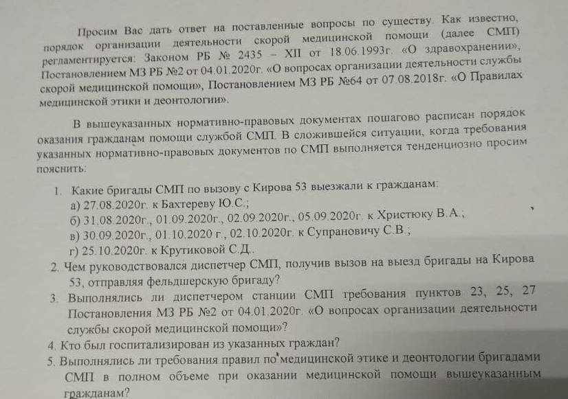 Фрагмент коллективного заявления инициативной группы на имя главврача Киктенко И. Ю.