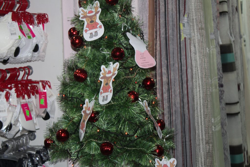 — Для начала необходимо прийти в магазин «Товары для женщин», снять с «ёлки желаний» открытку и приобрести тот подарок, который указан на открытке. Затем положить подарок в коробку, которая находится возле кассы магазина. Можно просто сделать пожертвования – положить деньги в копилку.