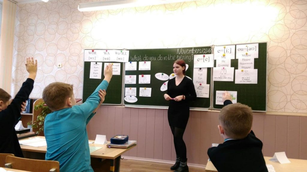Первый урок в качестве именно учителя, а не студента-практиканта прошел достаточно легко, но волнительно. Так как это 3-4 классы, то есть они только начинают знакомиться с моим предметом, необходимо мотивировать их учить английский, объяснить, что в наше время важно и полезно знать иностранный язык. Каждый урок стараюсь сделать необычным, красочным, запоминающимся и понятным, чтобы ребенок мог прийти домой и рассказать родителям что нового он узнал и для чего ему это нужно.