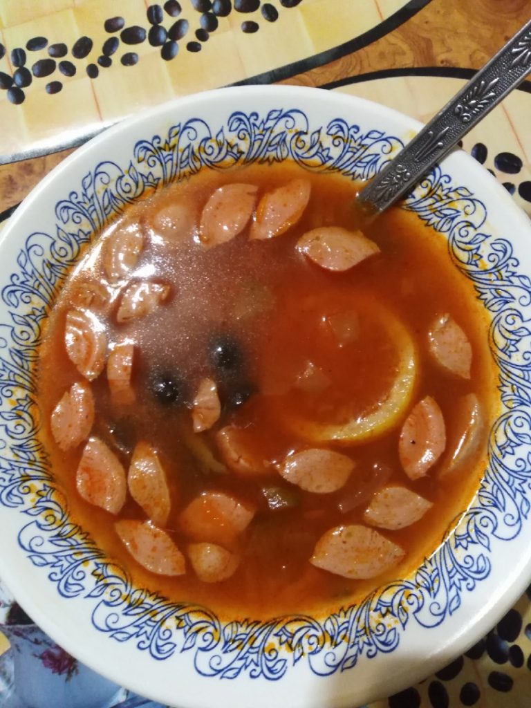 - Через 5 минут делаем финальный штрих – опускаем в суп ломтики лимона и маслины (количество на свое усмотрение). Перчим, солим и добавляем и лавровый лист по своему вкусу.
