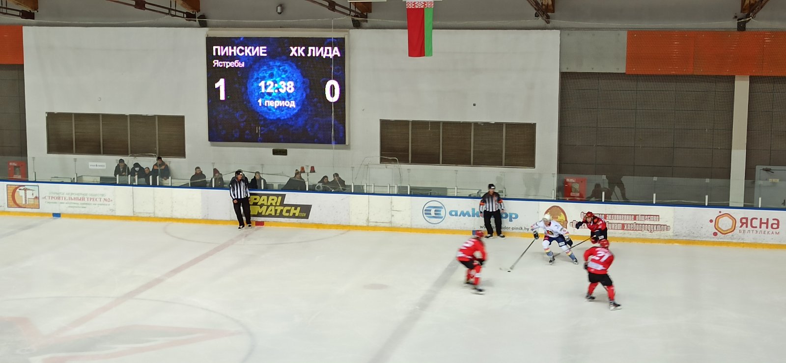 18:51 — второй период стартовал с атаки пинчан. Уже второй опасный бросок по воротам гостей, на высоте голкипер Лиды.