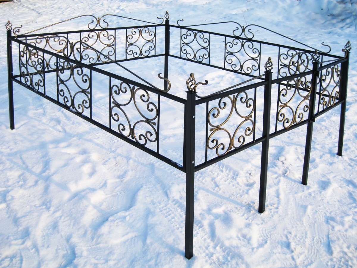 Кованые ограды используются в качестве ограждений для могил не первый год. Такой вариант долговечный и надежный, срок его службы ничем не ограничен. Разнообразие способов художественной ковки дает возможность подобрать тот дизайн оградки, который вам подходит.