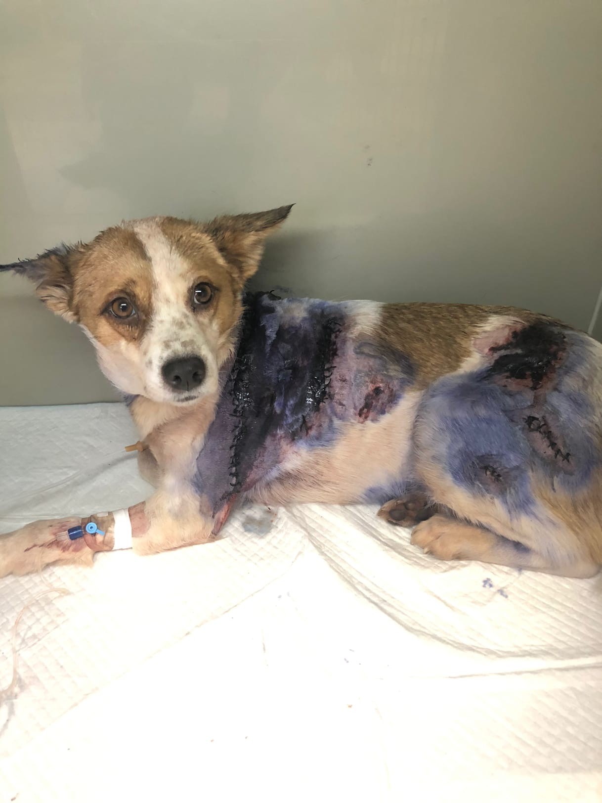 И чудо произошло! Уже на вторые сутки пациентка кушала и начала ходить. Все болезненные процедуры переносит терпеливо. Очень не хочется, пережившую ад собаку, возвращать в прежнее место.