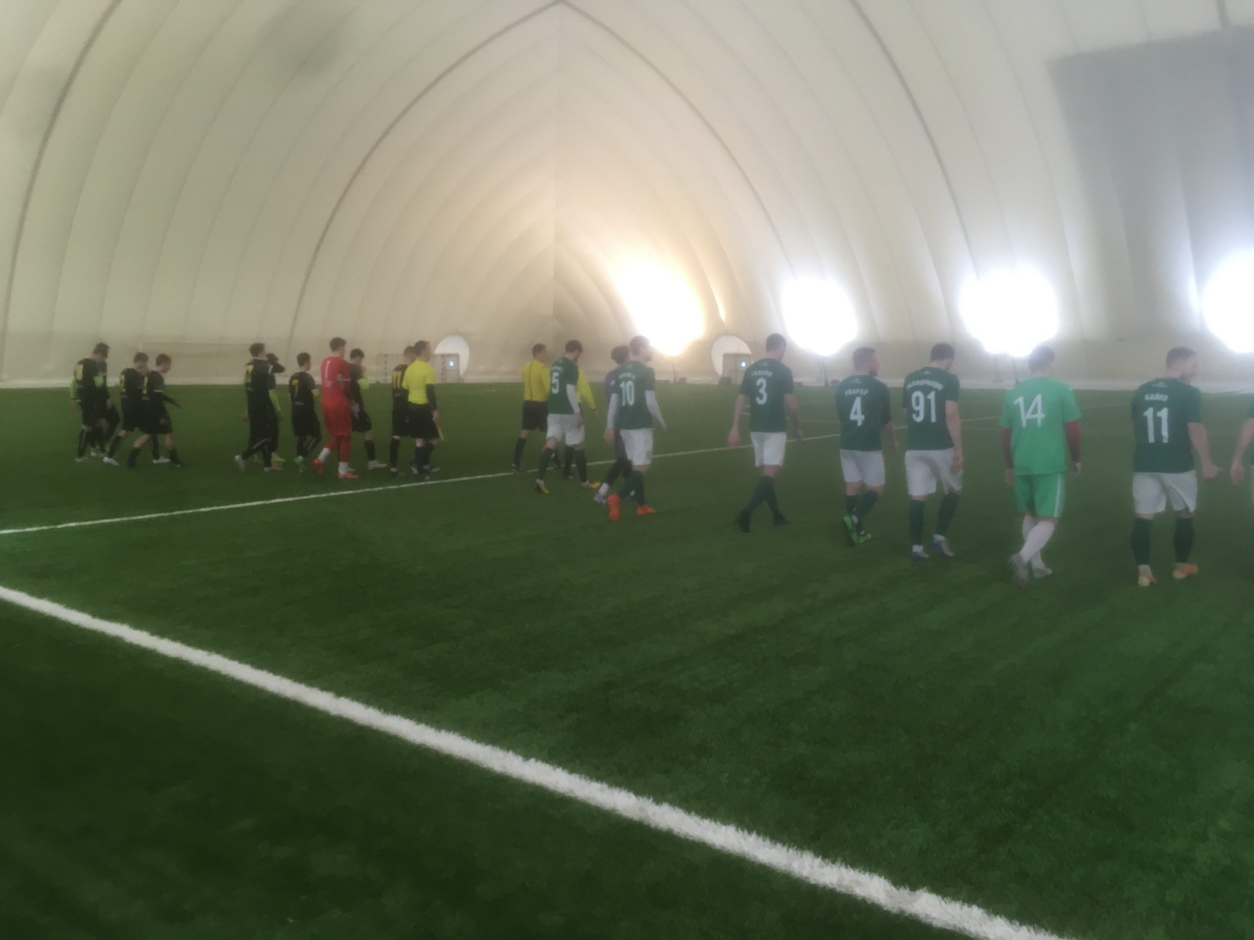 11:14 — а вот и первый удар в створ от пинчан. Удар после входа в штрафную, на месте вратарь.