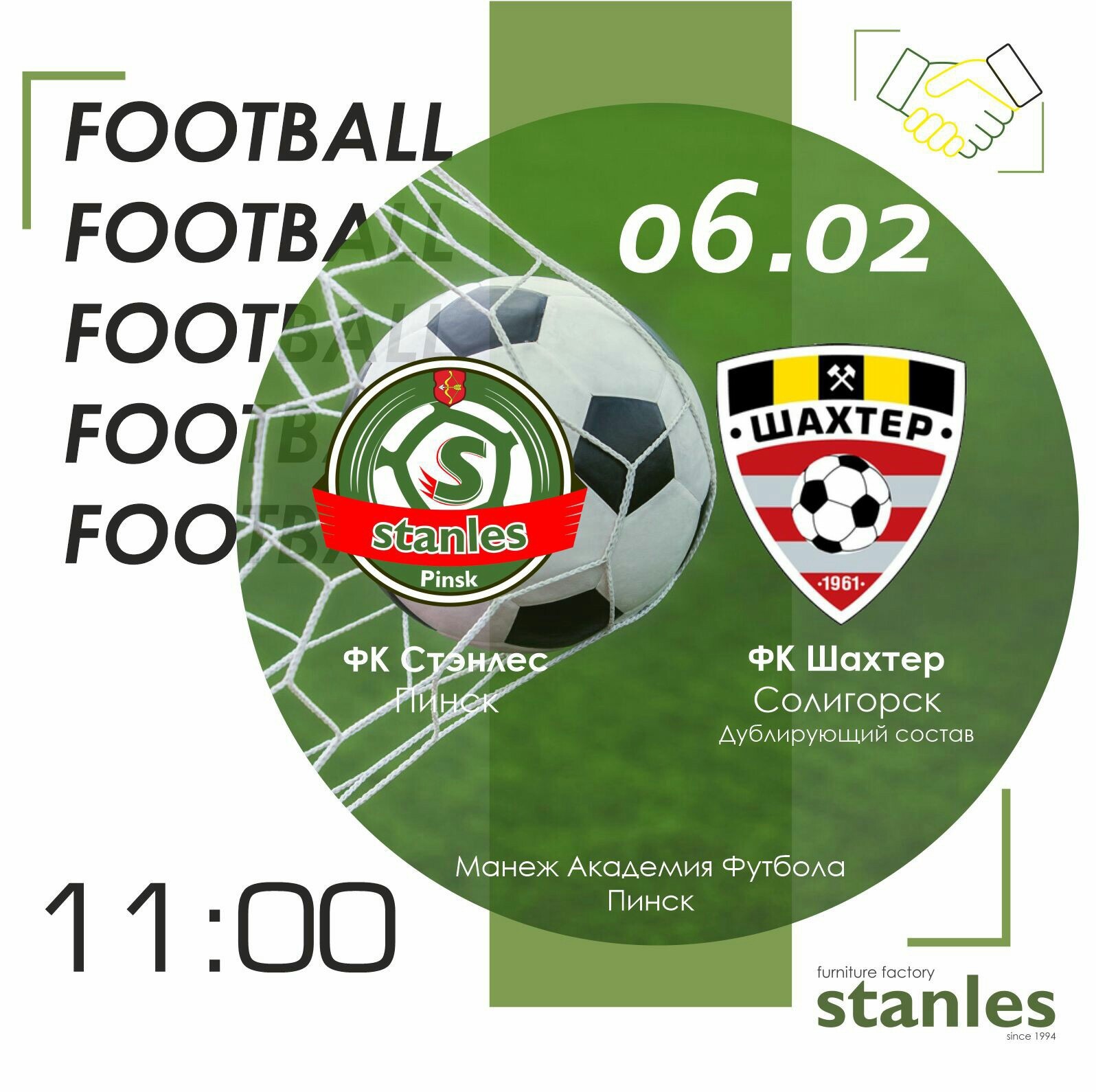 Текстовая трансляция матча «Стэнлес» — «Шахтер» (Солигорск) (дубль) стартует в 11 часов. Внимательно следим за матчем команд и болеем за пинчан!