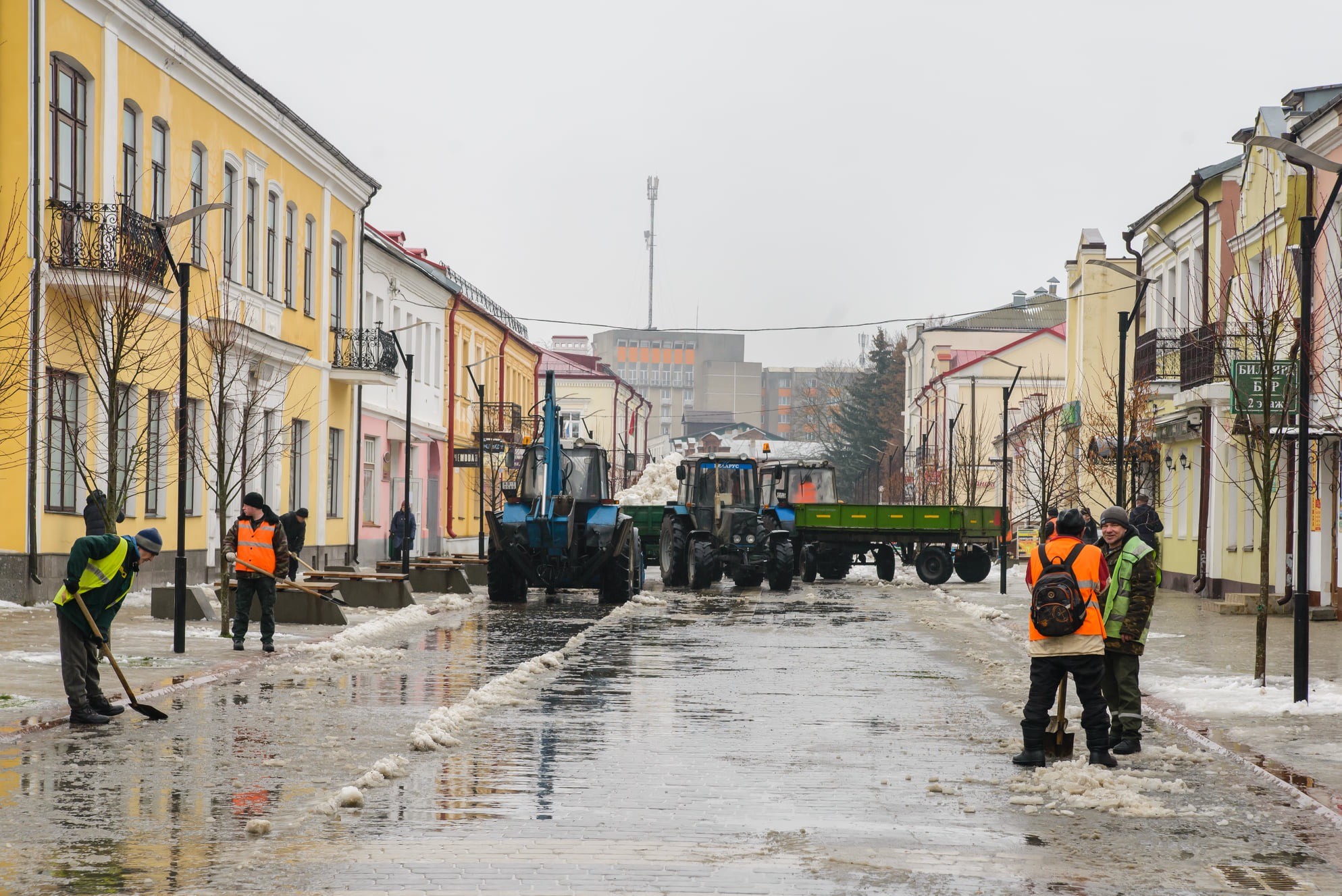 Погода вновь вносит коррективы в работу коммунальных служб. На смену совсем не зимнему теплу и дождям планомерно приходят морозы. Ещё в четверг, когда Минск засыпало снегом, в Пинске лил дождь. А уже в пятницу пришёл мороз, который превратил лужи в лёд.