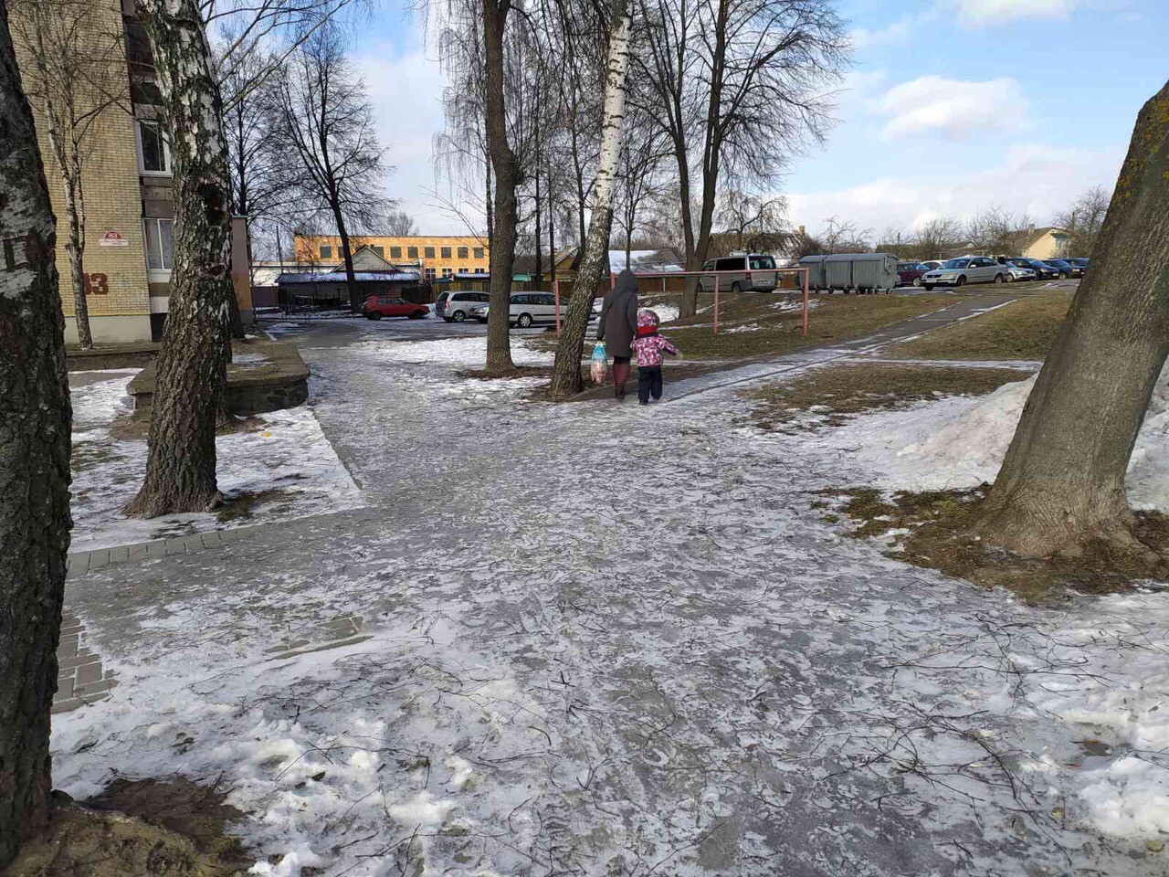 «Вчера (5 февраля) еле коляску с ребёнком до магазина и назад тянула. В Загорском районе, что возле подъездов, что на тротуаре лёд слоями лежит. Идёшь и боишься. Песком нигде ничего не посыпано» – рассказывает про ситуацию на окраине улицы Брестской молодая мама.