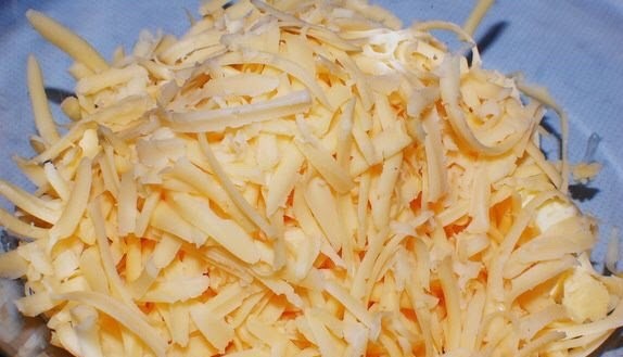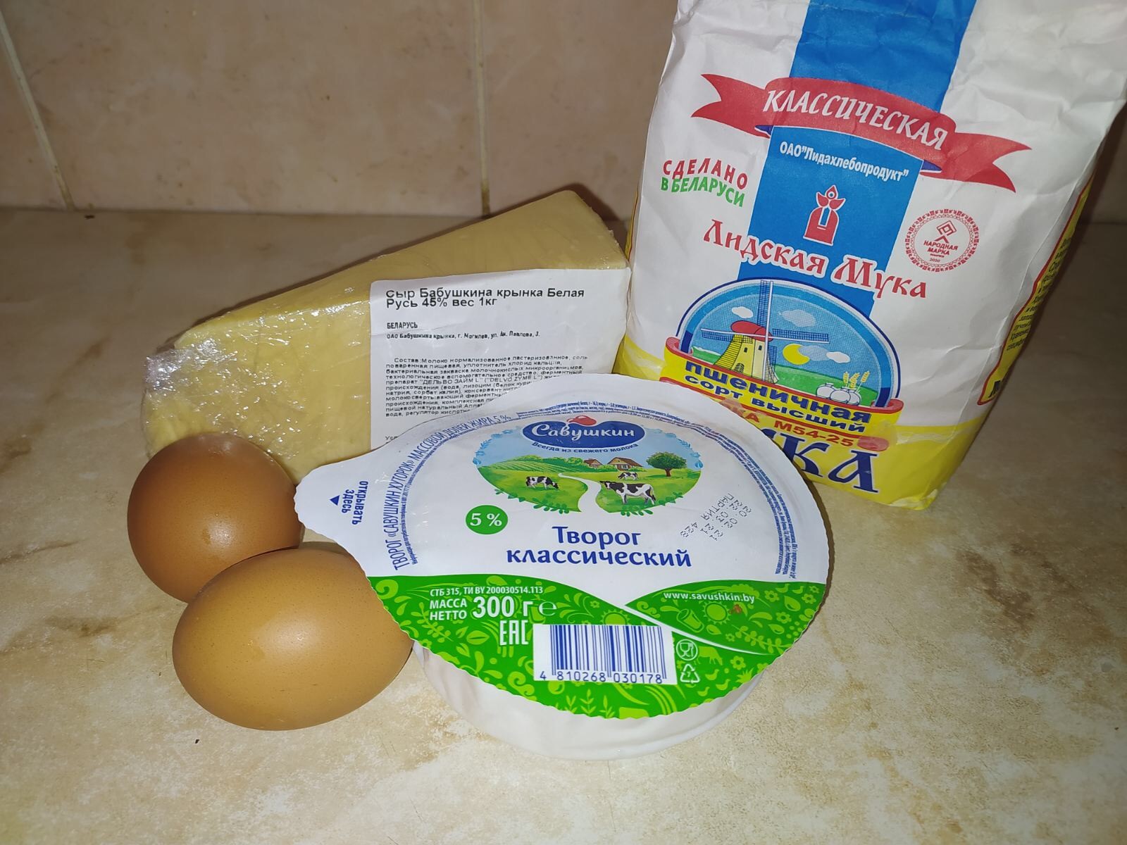 -Сыр натереть на крупной тёрке. Смешать с мукой, творогом и яйцами. Добавить соль и специи в муку по вкусу;