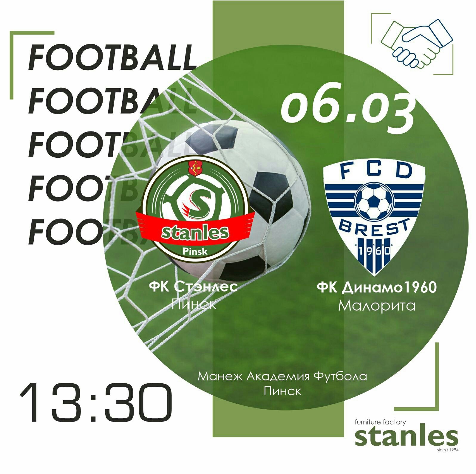 В эту субботу в пинском футбольном манеже очередной товарищеский матч «Стэнлеса». Пинский клуб продолжает подготовку к чемпионату второй лиги, которая стартует, предварительно, 17 апреля. На этот раз «Стэнлес» сыграет с клубом из своего дивизиона.