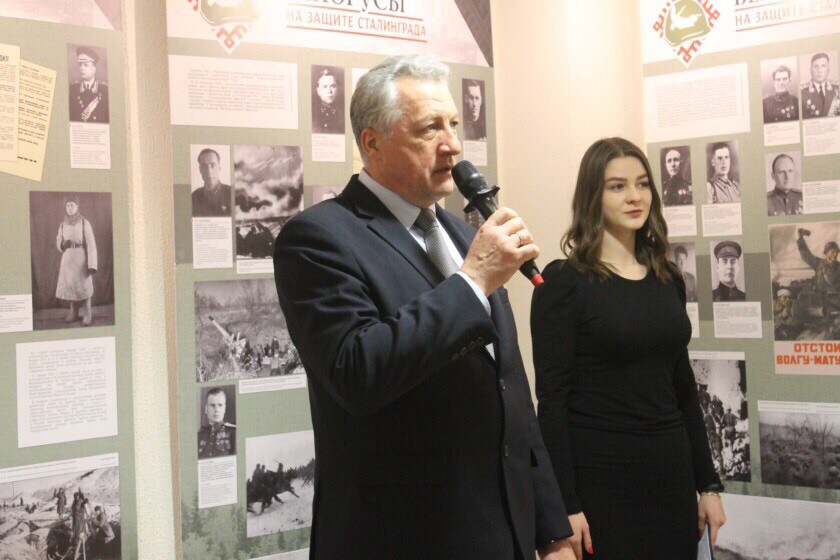 На открытии выставки было размещено более 15 тематических стендов. На них были изображены документы и фотографии жизни уроженцев Беларуси, освободишься Сталинграда, а также сталинградцев, принимавших участие в операции «Багратион» по освобождению Беларуси.