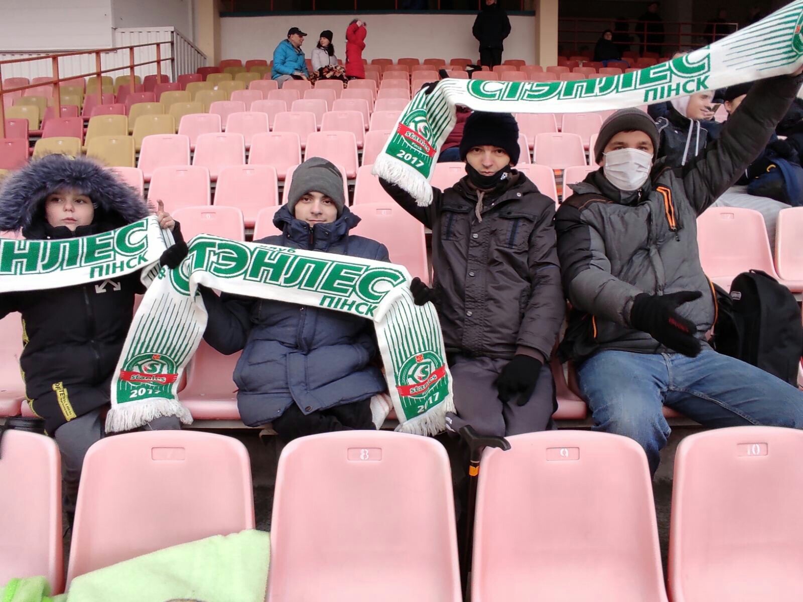 Среди них были и болельщики «Стэнлеса». Сюда вошёл и импровизированный детский сектор болельщиков пинского коллектива — Ольга Макаревич со своими детьми. Семья поддерживает клуб с прошлого года, организовав свой необычный фанатский сектор с шарфами и банером, которые они сами нарисовали.