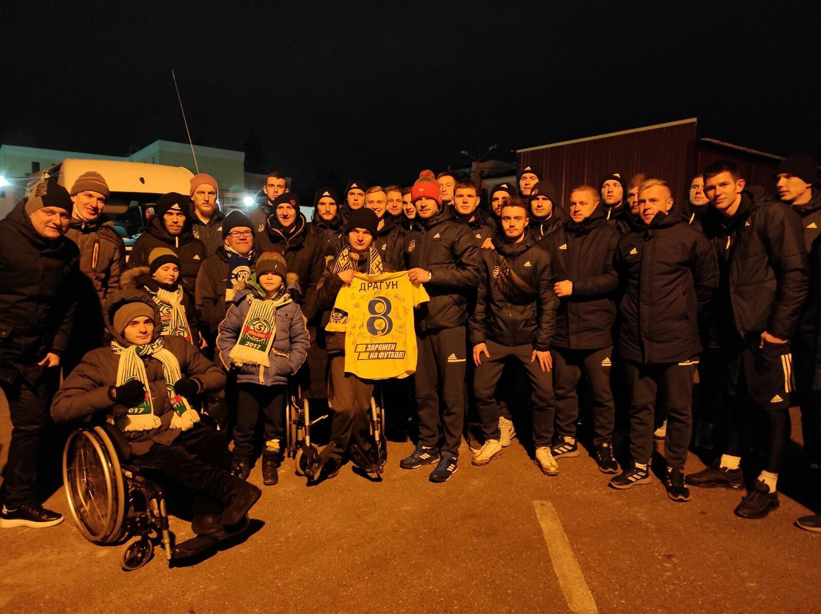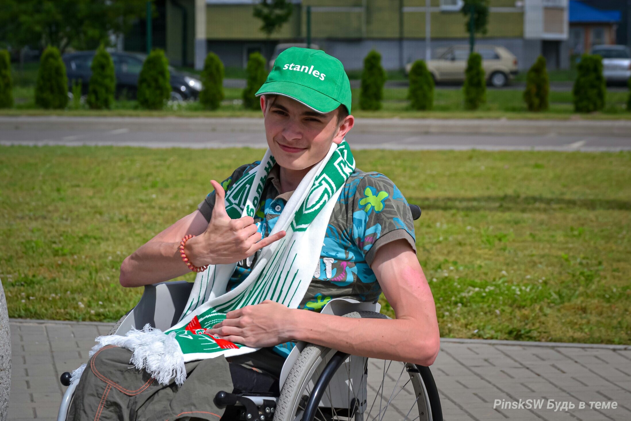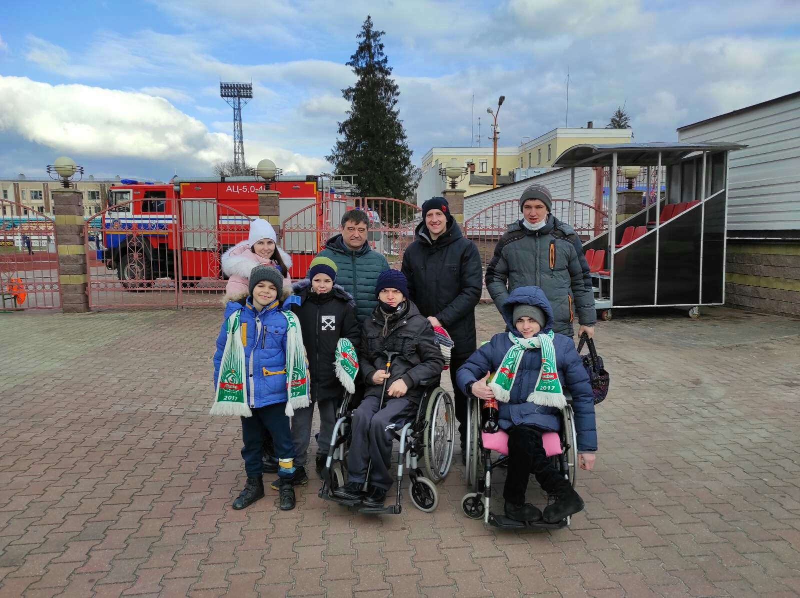 На матч поехали и три парня с ограниченными возможностями — Артём Лавренко, Денис Некрашевич и Юрий Полюхович. Все они являются преданными болельщиками пинских коллективов и не пропускают домашние матчи «Стэнлес» и «Волны». Артём даже ездил на выездные игры «Волны», а Денис постоянно посещает игры и хоккейного клуба «Пинские ястребы». Вся пинская делегация разместилась на стадионе в Бресте в клубных шарфах «Стэнлеса».