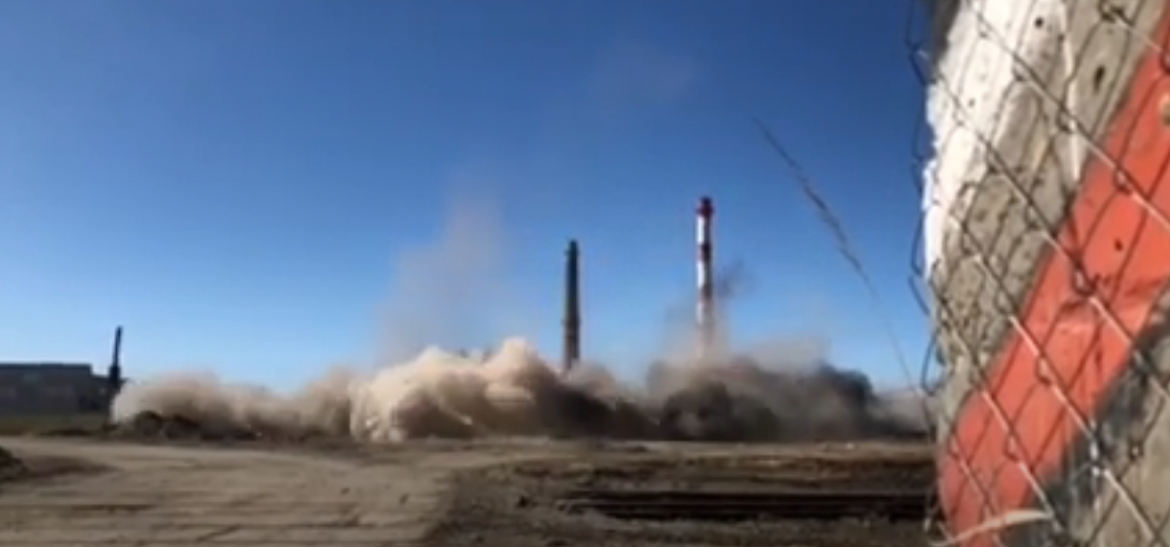 Как сообщается на канале Пинского центра ГУ «Республиканский отряд специального назначения «ЗУБР» 24 марта специалистами были проведены работы по обрушению неэксплуатируемой дымовой трубы на территории западного промышленного узла Пинска.
