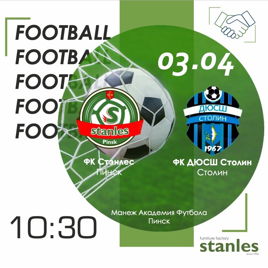 Товарищеский поединок «Стэнлеса» и «ДЮСШ-Столин» состоится 3 апреля на поле академии футбола. Начало встречи в 10:30.