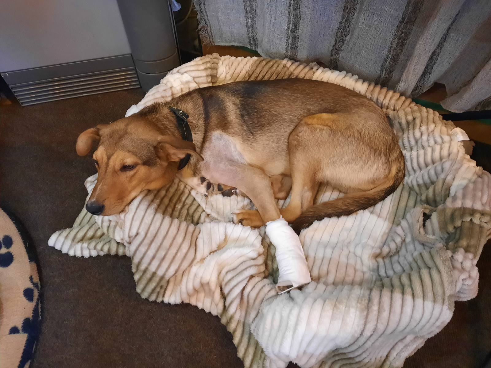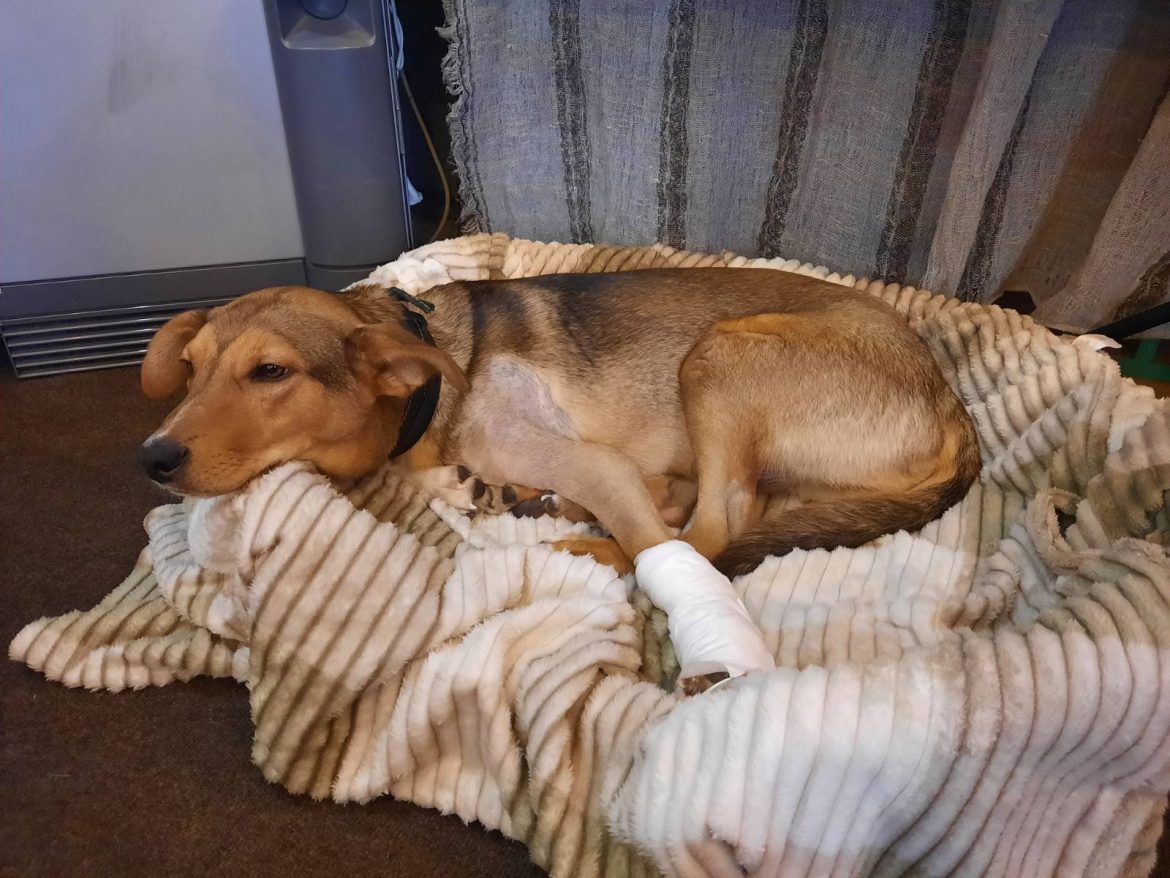 В конце прошлого года щенок пострадал на трассе и неравнодушная женщина не смогла бросить раненое животное — привезла в Пинскую ветеринарную станцию.