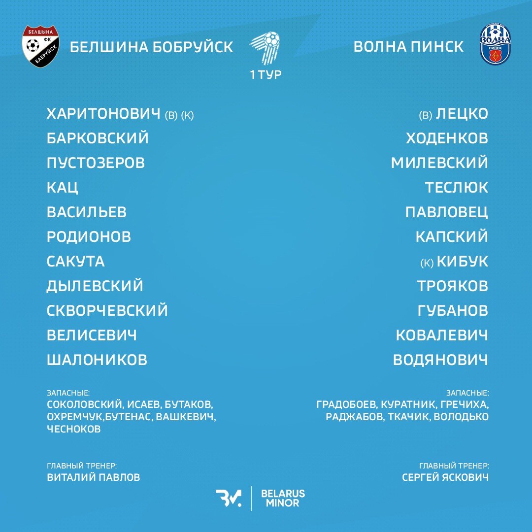 Соперники уже в третий раз сыграют в дебюте чемпионата. На данный момент паритет встреч команд на старте чемпионата – 1 победа у «Белшины» и одна у «Волны». В 2008 году пинчане в Бобруйске минимально одолели «Белшину» — 3:2. Через 10 лет, в 2018 году, бобруйчане минимально обыграли «Волну» в Пинске – 1:0.