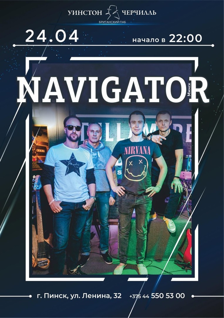 Вечер субботы скучным тоже не будет, если вы планируете провести его в Winston Churchill Pub. Вас будет радовать своим творчеством и энергетикой кавербэнд «Навигатор» (г. Минск), который уже давно является резидентом Паба «Уинстон Черчилль» и неоднократно подымал со своих мест гостей паба в эмоциональные танцы. А в воскресенье вы сможете окунуться в атмосферу истинной романтики в сопровождении изумительного вокала Марии Палаш.