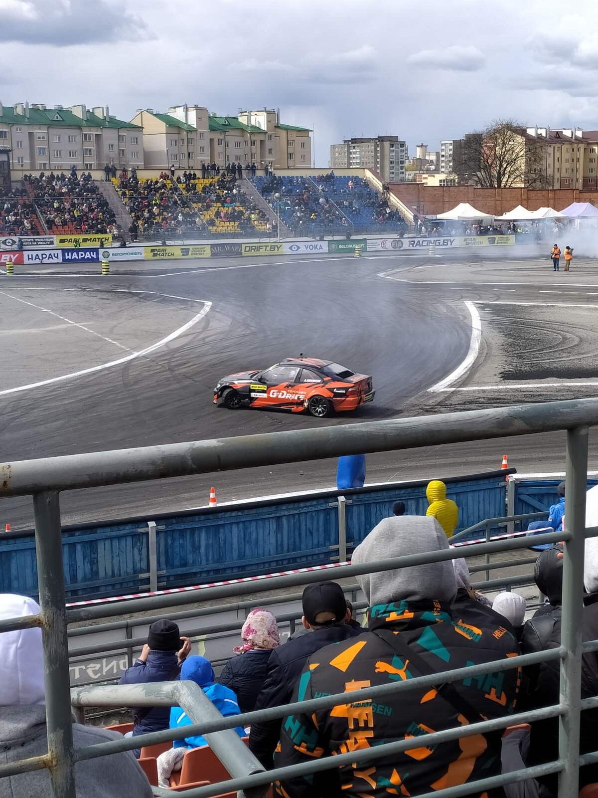 В 12 часов очереди в кассы стадиона (микроавтобуса в смысле). Открытие в 13:00. Есть предположение, что сегодня будет самая низкая посещаемость на футбольном стадионе «Волна», ведь дрифт заканчивается в 17:45, как и футбол. Развести два спортивных мероприятия, конечно, не додумались.