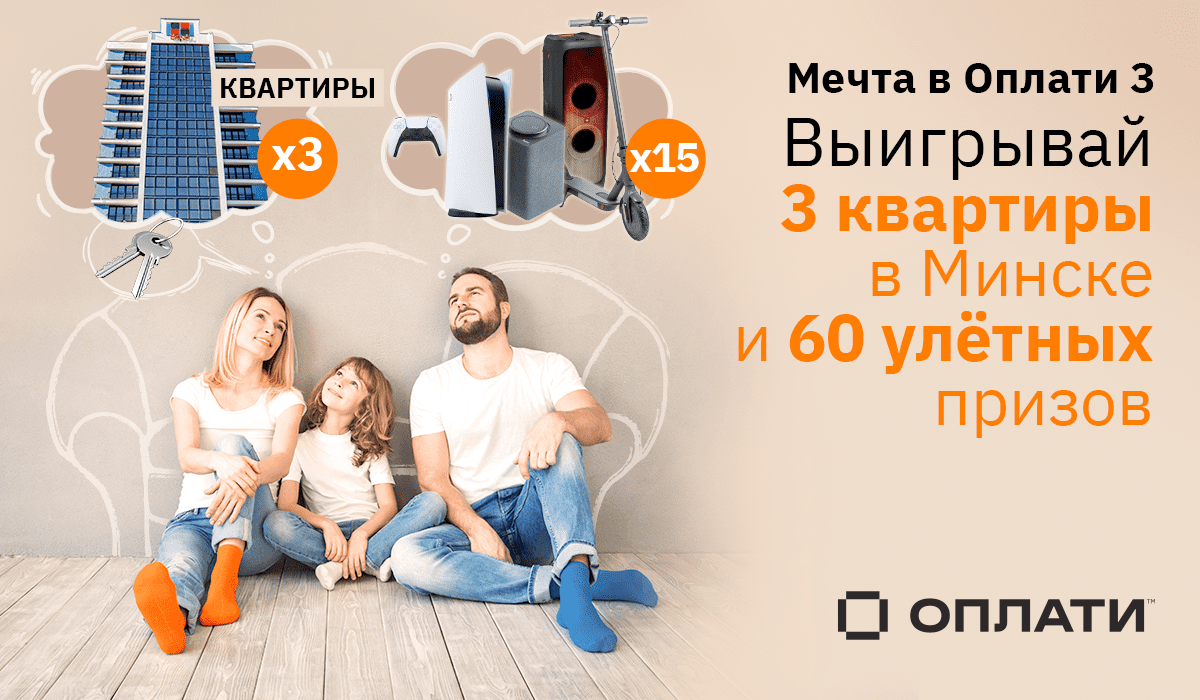Сейчас пользователи приложения Оплатитм участвуют в серии рекламных игр от мобильного сервиса «Мечта в Оплати — 2 и 3». Призовой фонд составляют 3 квартиры в престижных жилых комплексах Минска, 25 телефонов iPhone 12, а также электросамокаты Xiaomi, игровые приставки Sony PS-5, докстанции Алиса и акустические системы JBL-1000Вт. Подробнее можно узнать на сайте o-plati.by.