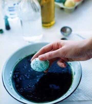 Простой способ сделать пасхальный атрибут эффектным. Все так же легко приготовить. Смешивают любые красители, добавляют одну столовую ложку подсолнечного масла. Мраморный эффект обеспечен.