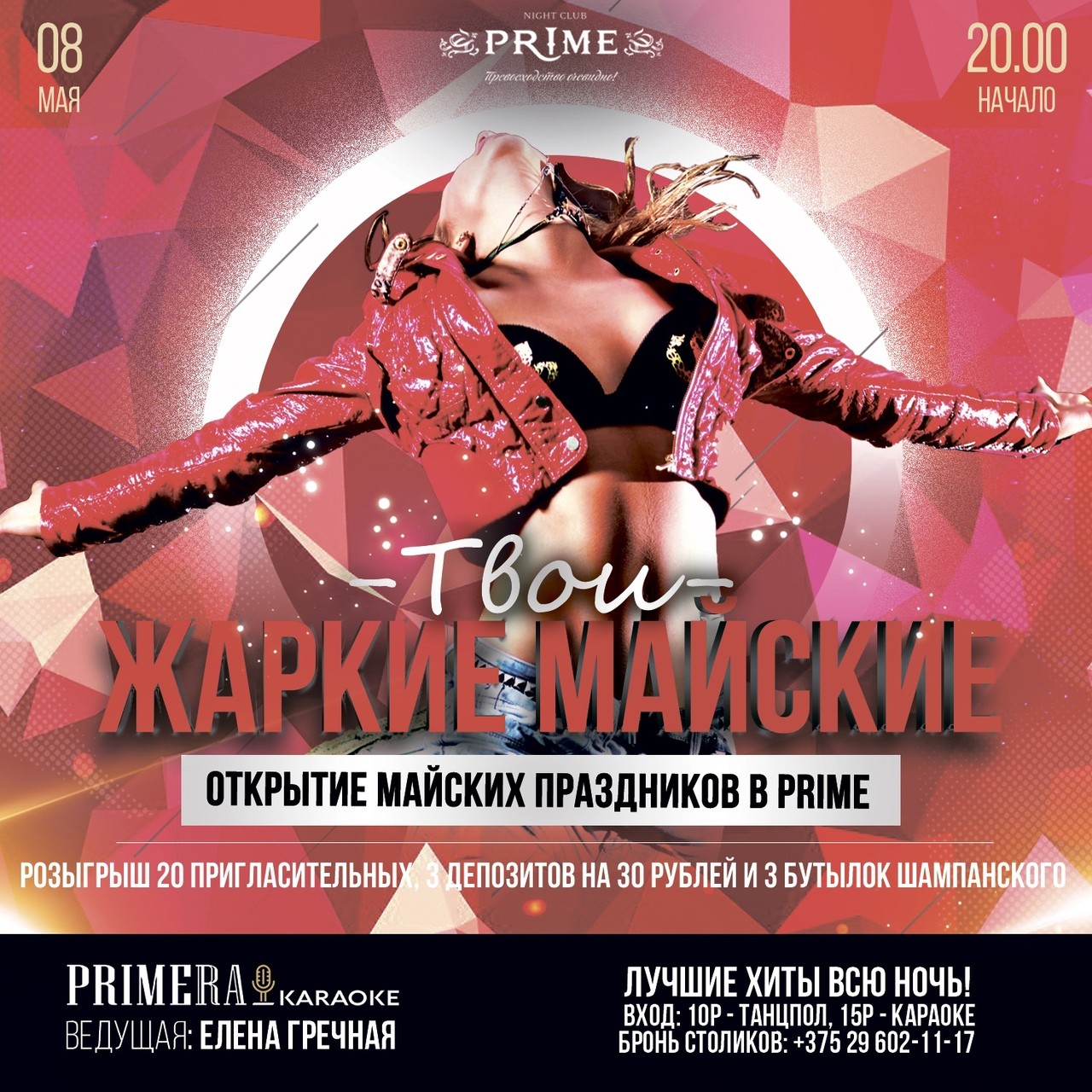 Горячие майские выходные ждут вас и в ночном клубе PRIME. Череда незабываемых ночей и лучшие моменты ночи не оставят вас равнодушными.
