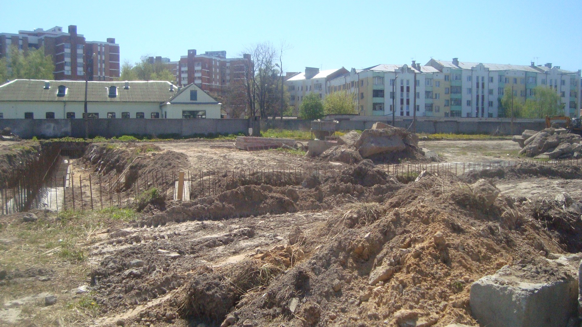 Уже в этом месяце к строительству манежа приступили. Левее от стадиона «Припять» огородили часть территории. Ее стали активно подготавливать к фундаменту будущих кортов.