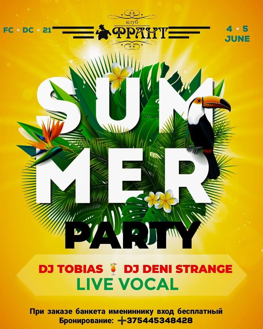Ресторан-клуб «Франт» тоже приглашает провести первые летние выходные вместе — это время коротких юбочек, освежающих коктейлей, спонтанных встреч, душевных разговоров, взрывных танцев, безумных идей, безудержных приключений и запоминающихся песен!