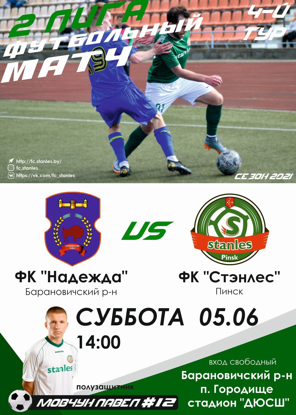 У «Стэнлеса» в чемпионате второй лиги 2 победы из двух возможных (5:0 «Новая Припять», 0:6 «Гранит»). Пинчане расположились на 3 строчке в своей группе, пропустив вперёд «Иваново» (у них 7 баллов, но на 1 игру больше). Остаётся «сухим» в чемпионате и вратарь «Стэнлеса» Анатолий Тупилов. Не пропускали ещё в группе «Ивацевичи-СДЮШОР».