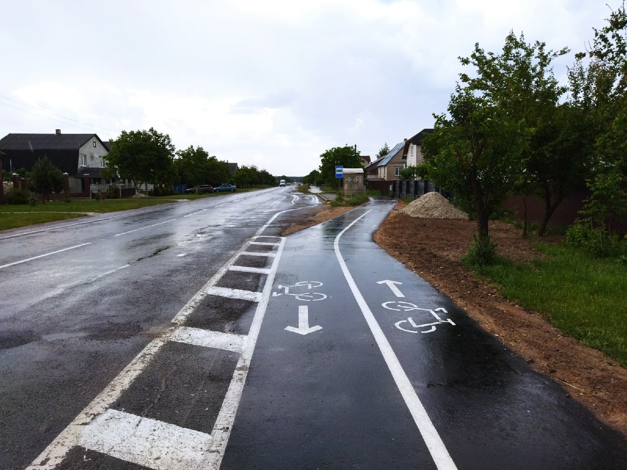 Работы были начаты еще в прошлом году. И уже, наконец, в этом году жители Жилгородка радуются новой асфальтированной велосипедной дорожки, которая также служит и тротуаром. Дорожки проложили по улицам Янки Мавра и Михася Лынькова.