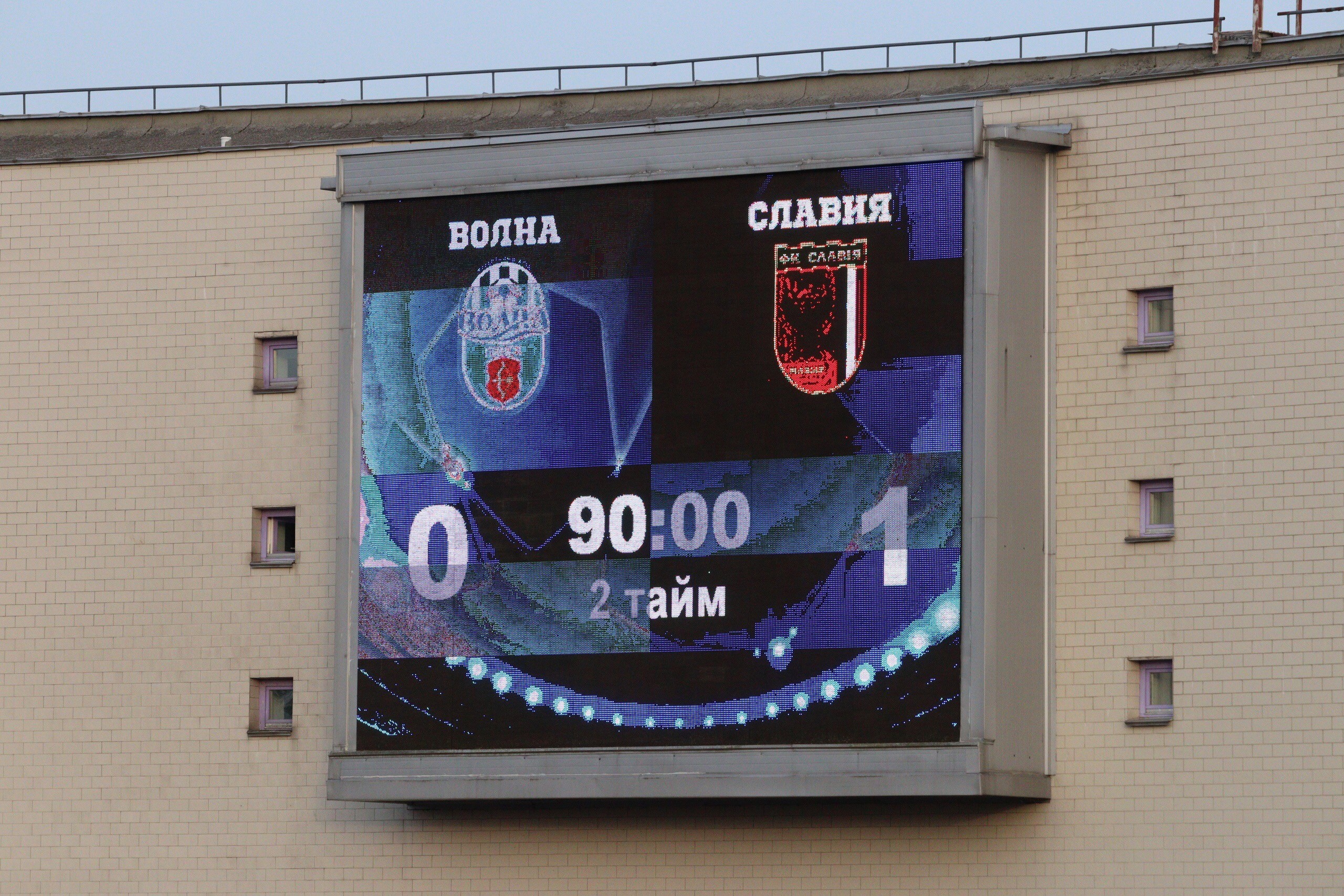 Начало оказалось совсем не в пользу «Волны». «Славия» уповала на быстрый гол и добилась своего. Гости уже в начале второй двадцатиминутки открыли счёт. Слюсар с очевидного пенальти на 13-ой минуте открыл счёт.