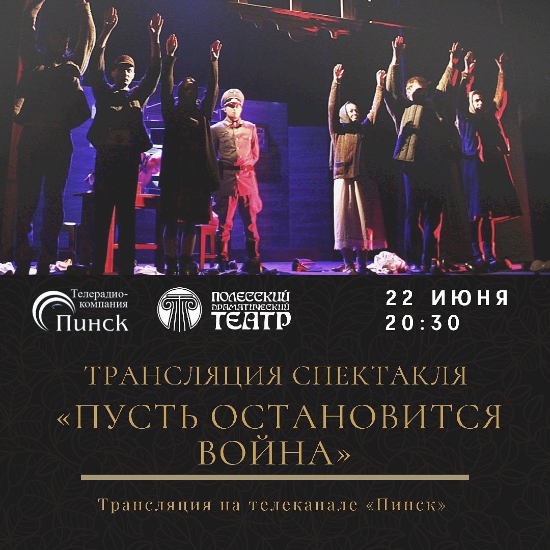 Телеканал «Пинск» и Полесский драматический театр не остались в стороне в этот день. Пинский телеканал организовал показ знаменитого спектакля в исполнении местных актёров театра. Документальную пьесу «Пусть остановится война» уже давно не ставили на сцене театра, но 22 июня её показали по телеканалу «Пинск».
