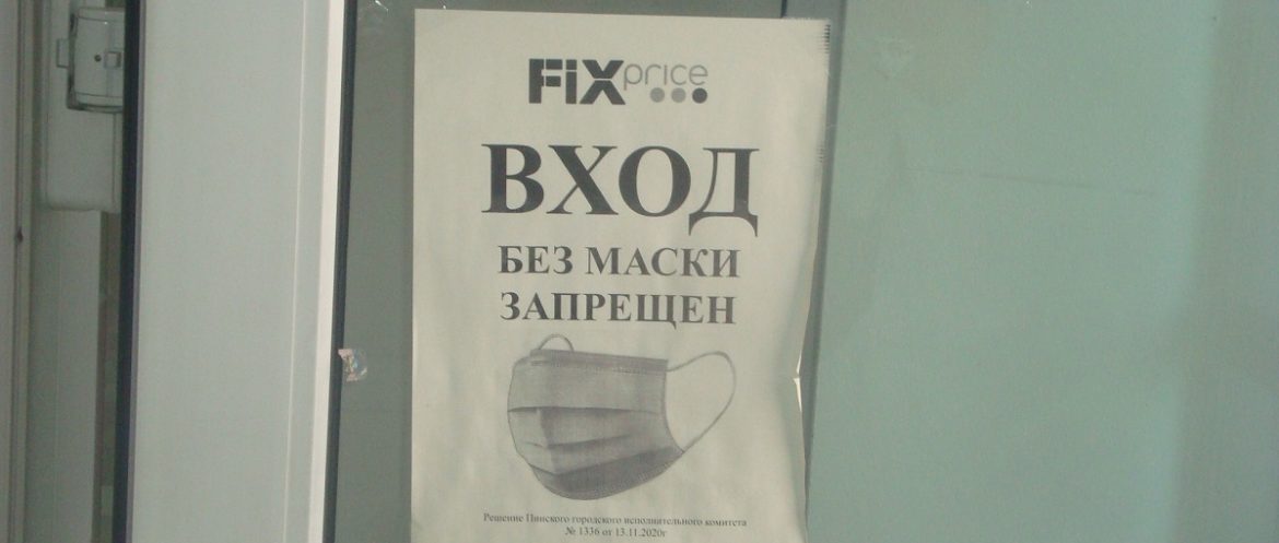 В Пинске с 13 ноября 2020 года введён масочный режим. Не убрали его ни после первой, ни в начале второй волны коронавируса. С 17 января этого года сняли ряд ограничений, но масочный режим остался. Но многие работники и посетители общественных объектов Пинска уже не обращают на него внимание.