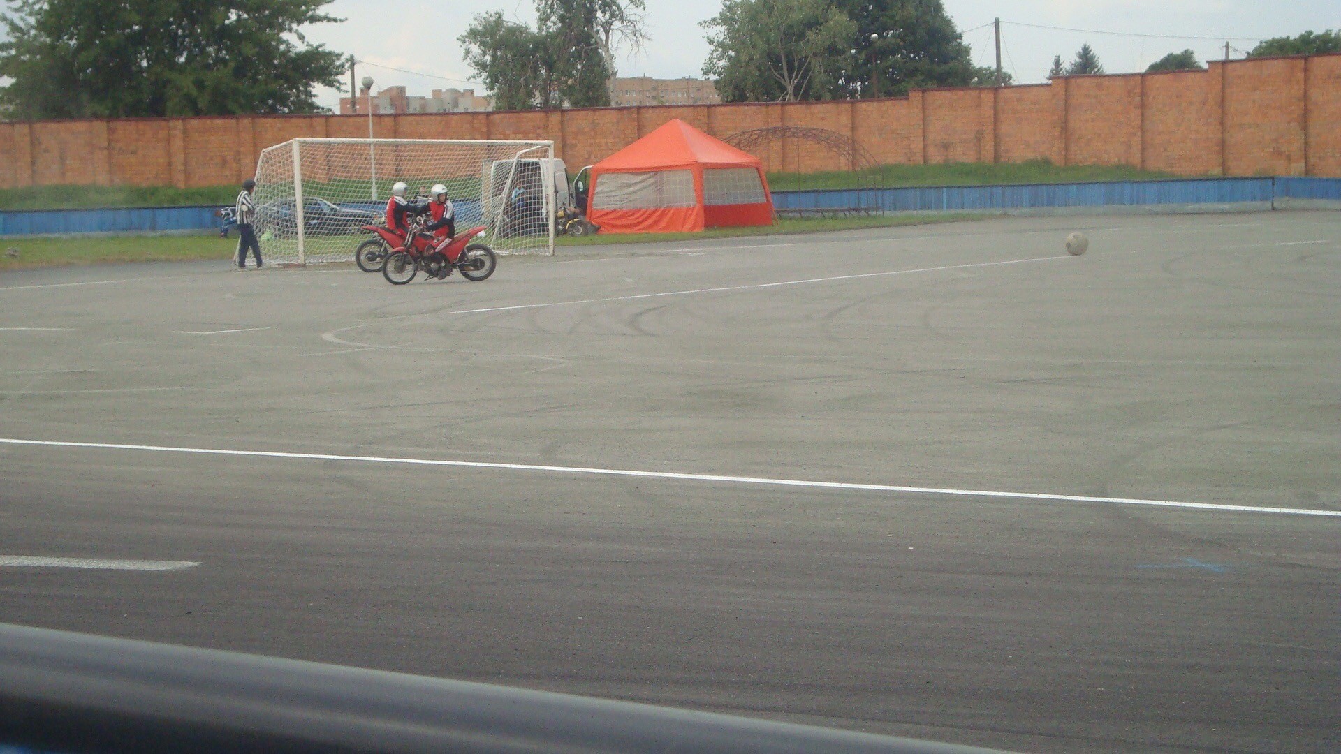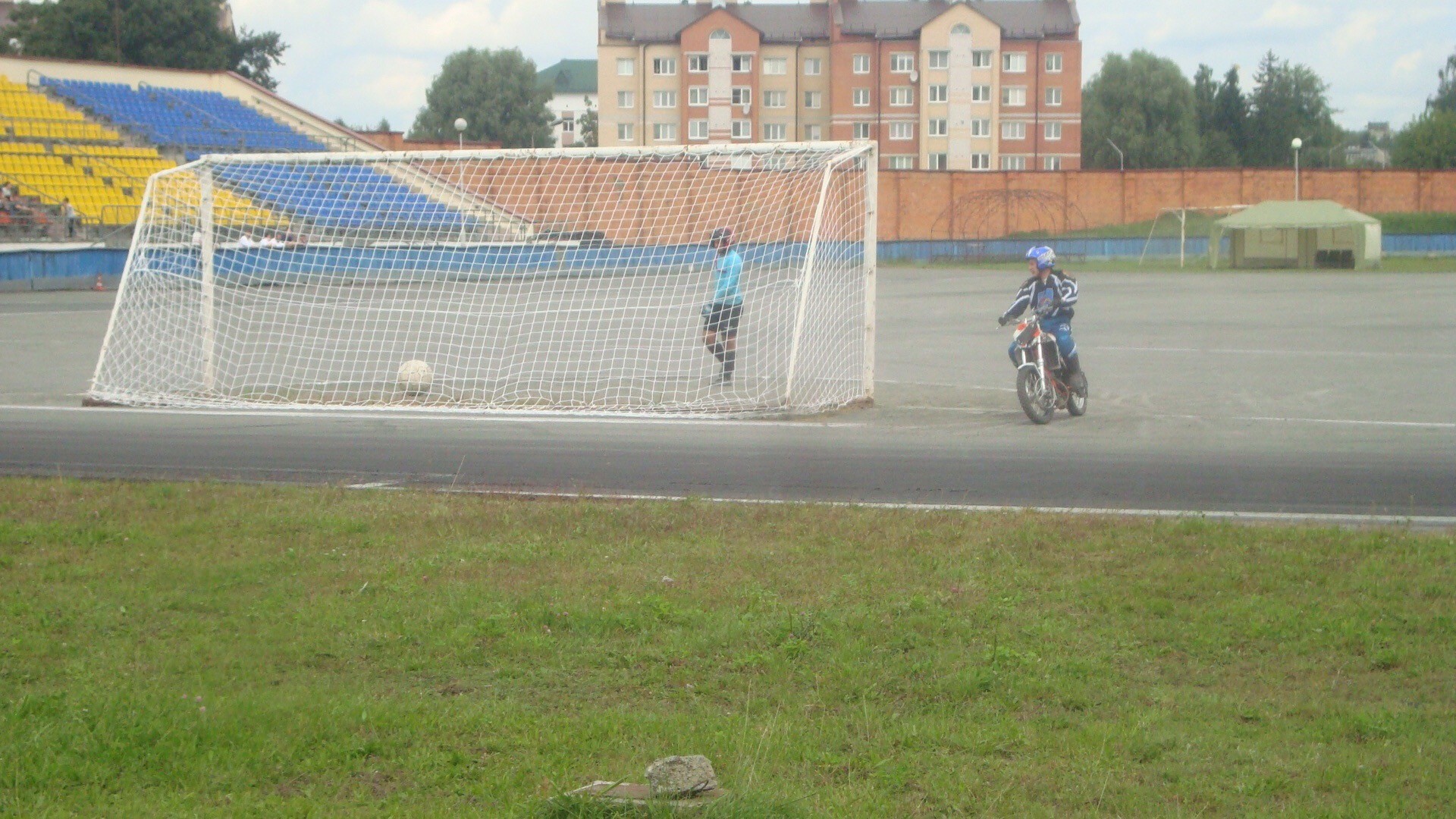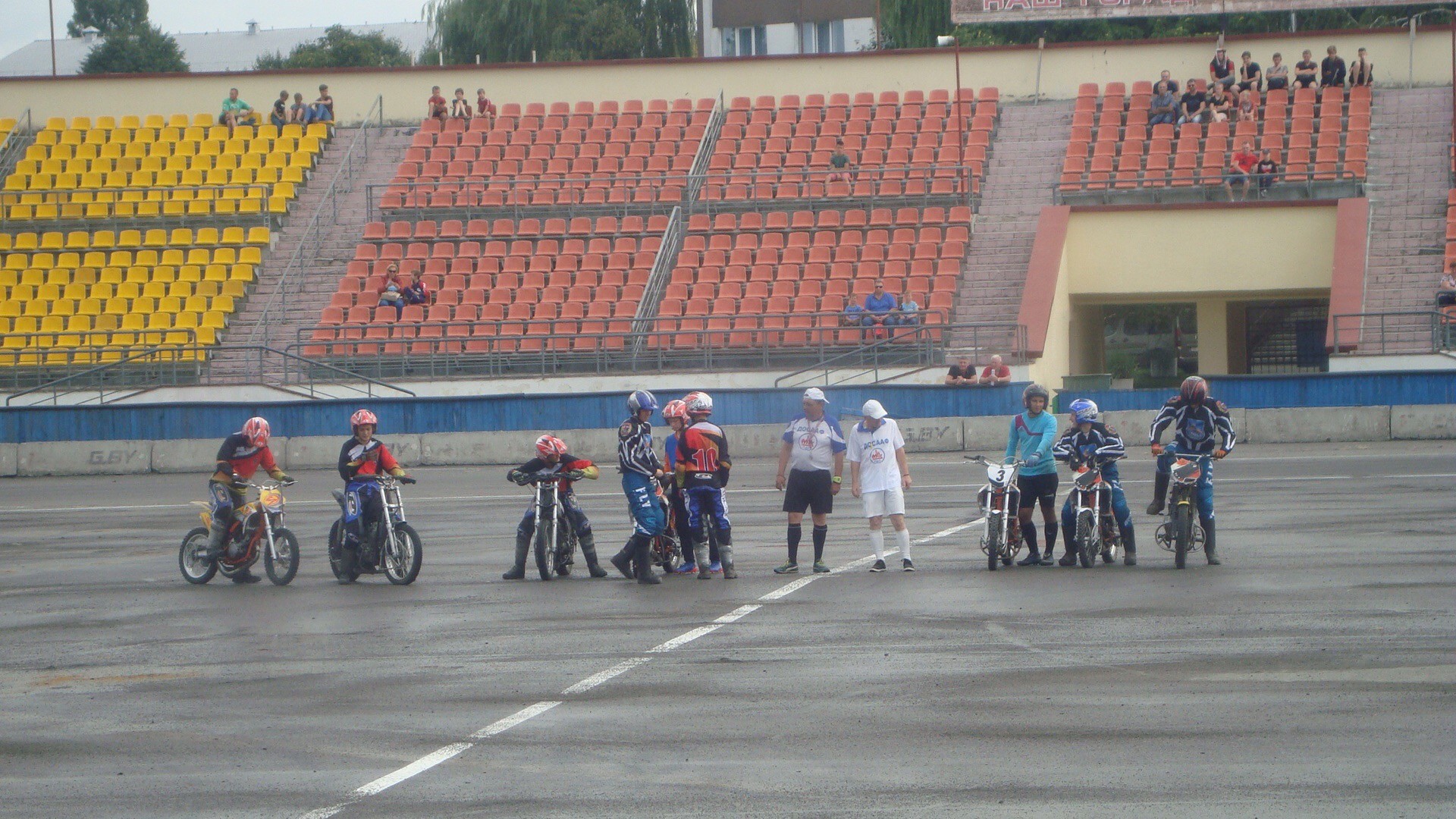 В пятницу утром пинский зритель неохотно шёл на стадион ДОСААФ на бесплатные республиканские соревнования. К церемонии открытия на двух трибунах было совсем мало людей. В принципе, и самого открытия не было. Спокойно разминалась лишь мотобольная команда «Гродно», нарушая царившую тишину.