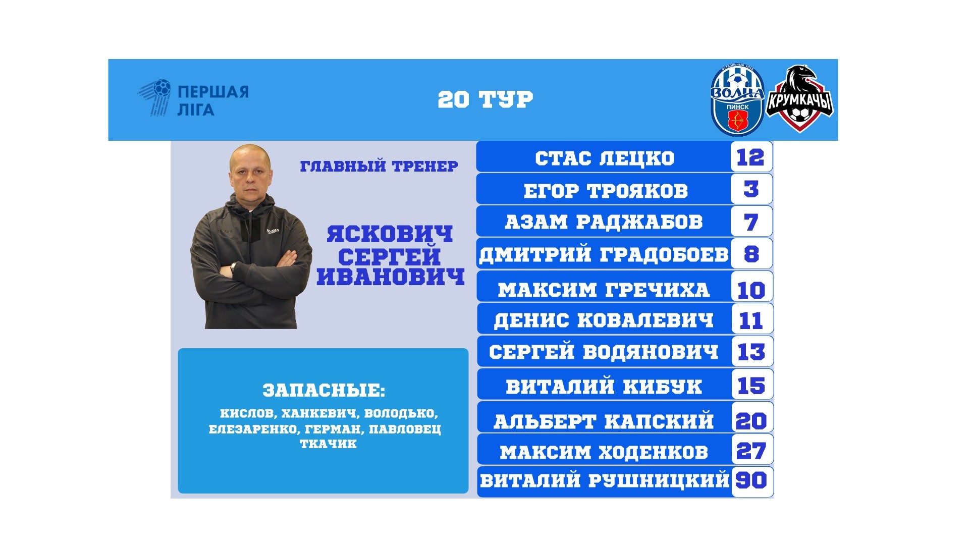 Центральный матч первой лиги 20 тура пройдёт в Пинске. Интерес к этому поединку неслучаен. «Волна» уже три матча подряд набирает очки, «Крумкачы» столько же игр также без поражений. «Волна» набрала 12 очков дома, «Крумкачы» разжились 10 баллами на выезде.