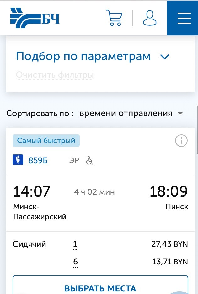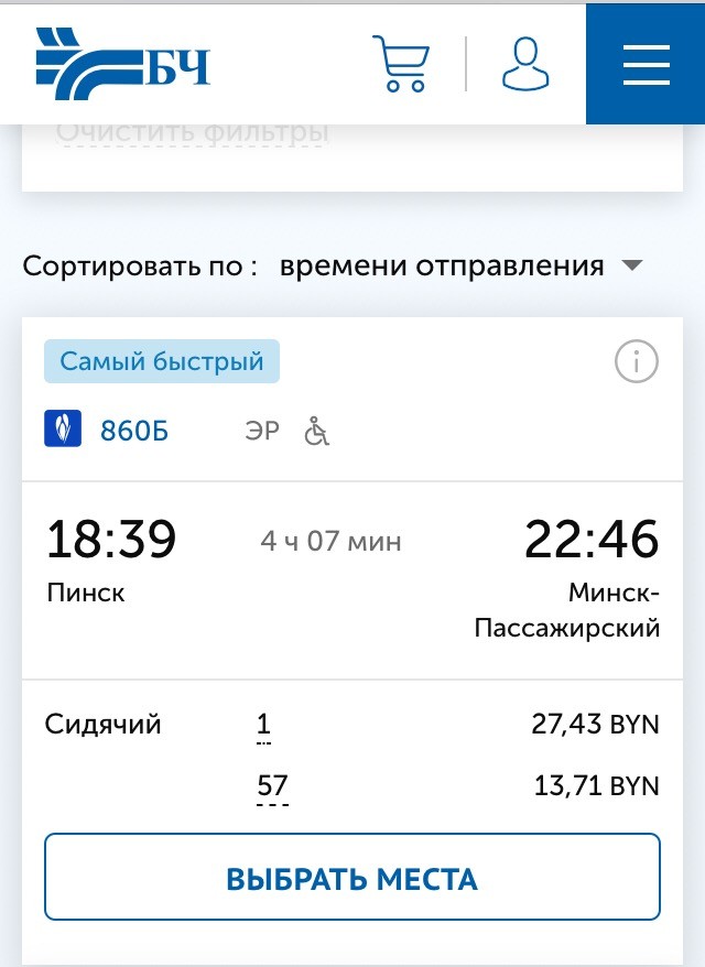 Этот поезд сейчас является самым быстрым и комфортным. В столицу он довезет за 4 часа и 7 минут. Примерно такое же время тратит маршрутное такси, не считая время сбора пассажиров по Пинску. Сидячие места в поезде стоят 13,71 и 27,43 рублей (маршрутное такси в среднем 18 рублей). И данный поезд пользуется спросом.