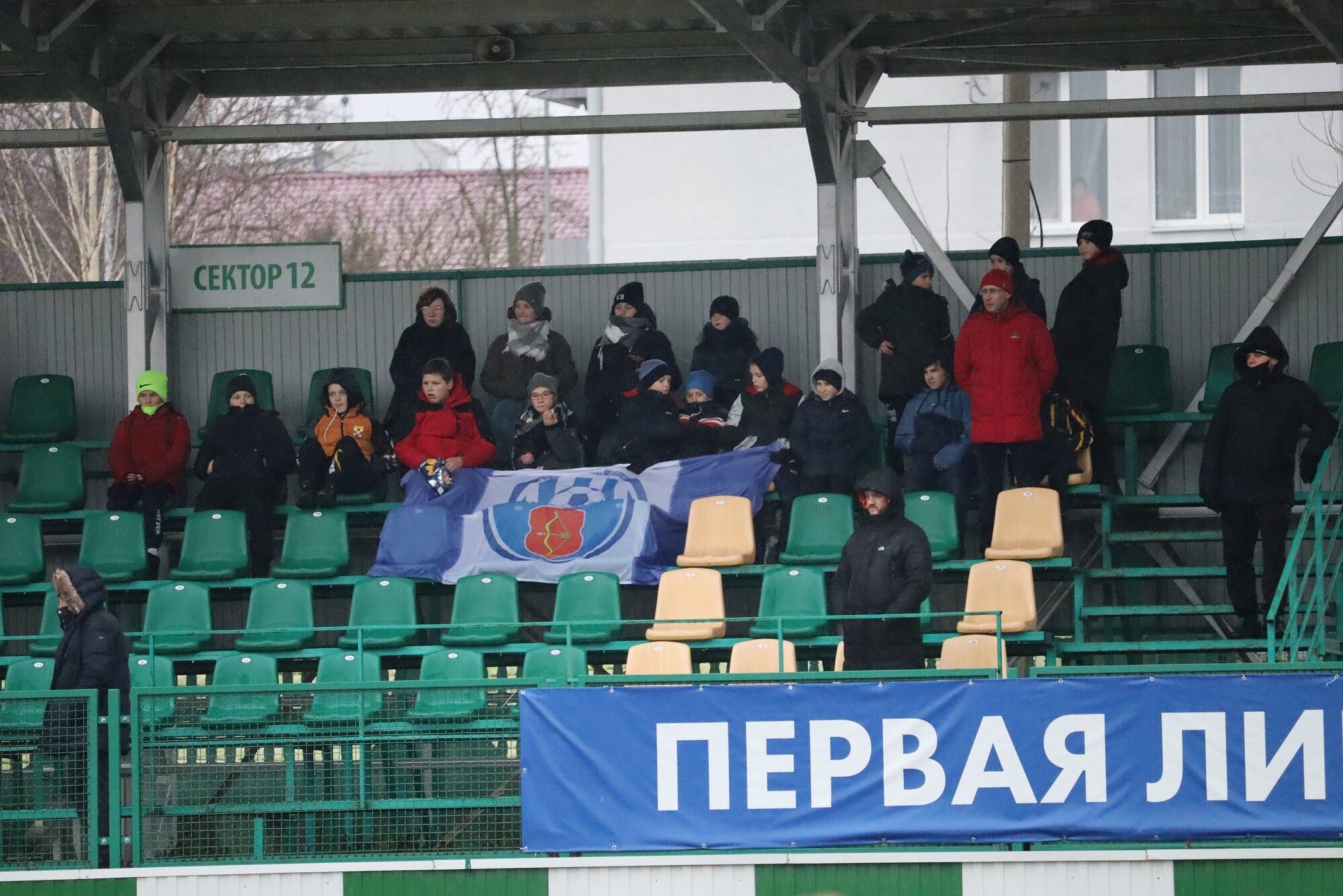 Но затем гости стадиона в Петрикове собрались и забрали мяч под контроль. Ещё в первом тайме защитник Утюжников головой с близкого расстояния буквально «занес» мяч в ворота — 1:1.