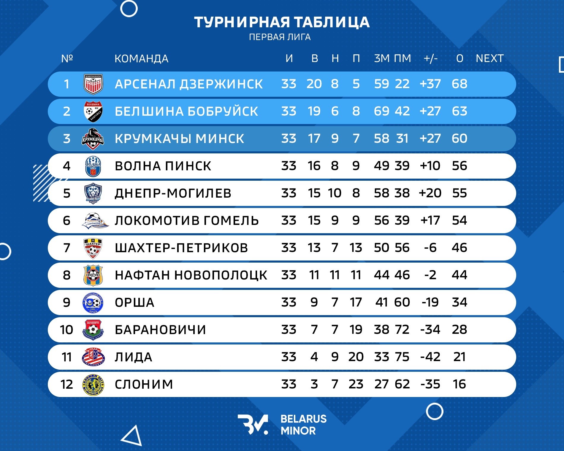 «Крумкачы» закрепляются на третьей строчке в независимости от результата матча «Арсенала» и «Волны». Пинчане же остаются на высоком для себя четвёртом месте. Но и эта строчке вполне может вывести их в элиту. «Волна» будет первым клубом, которому предложат отправиться на повышение в случае отказа от участия любой из команд высшей лиги.
