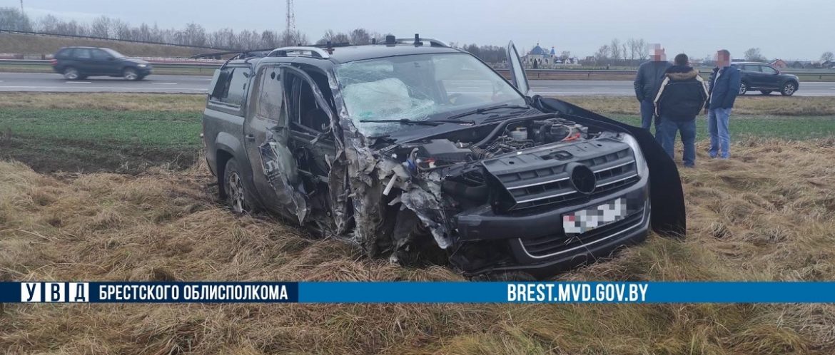 По предварительной информации, 47-летний брестчанин за рулём «Фольксваген» отвлёкся от управления и совершил наезд на световую опору, остановочный пункт и выехал в поле.