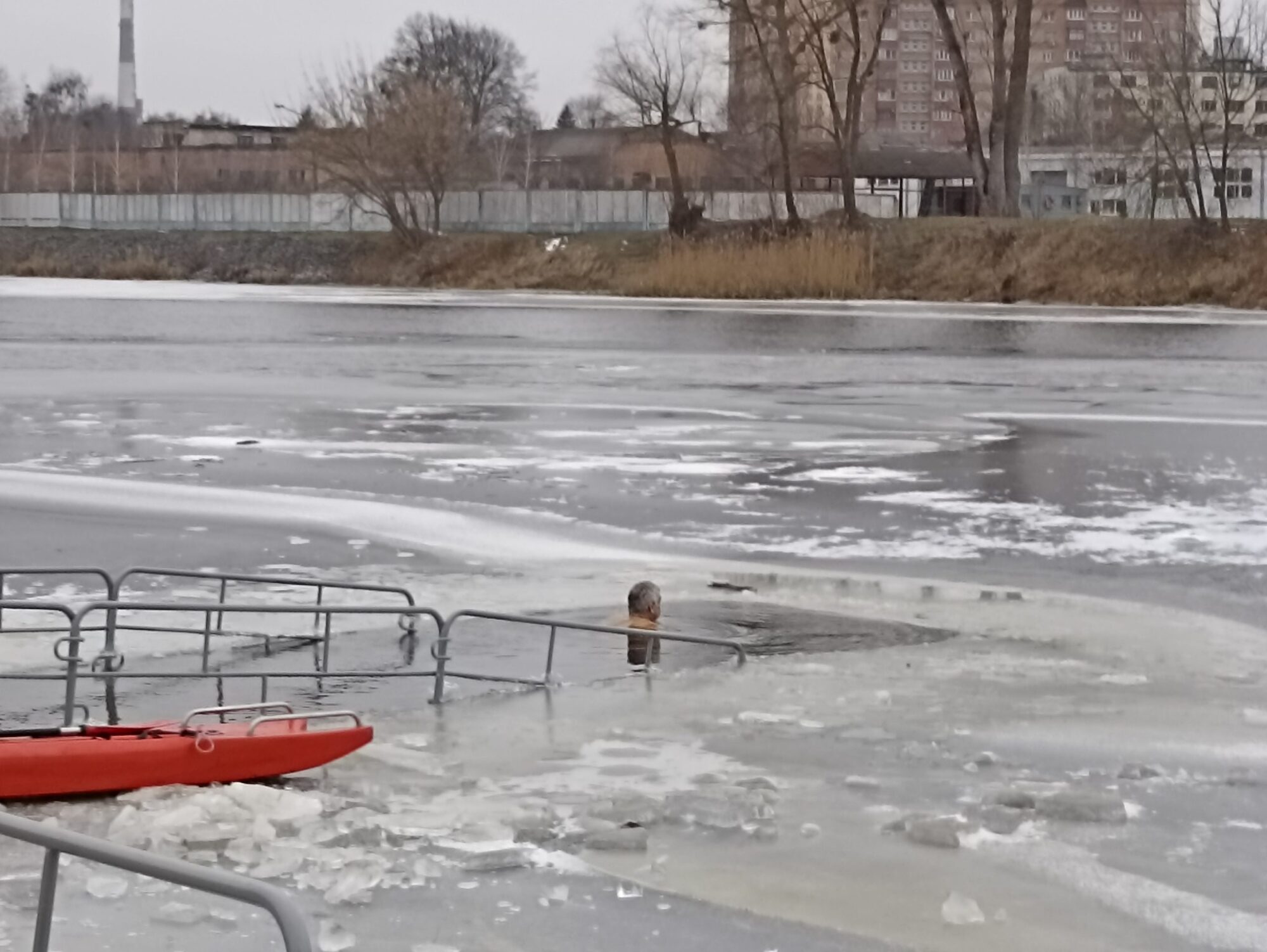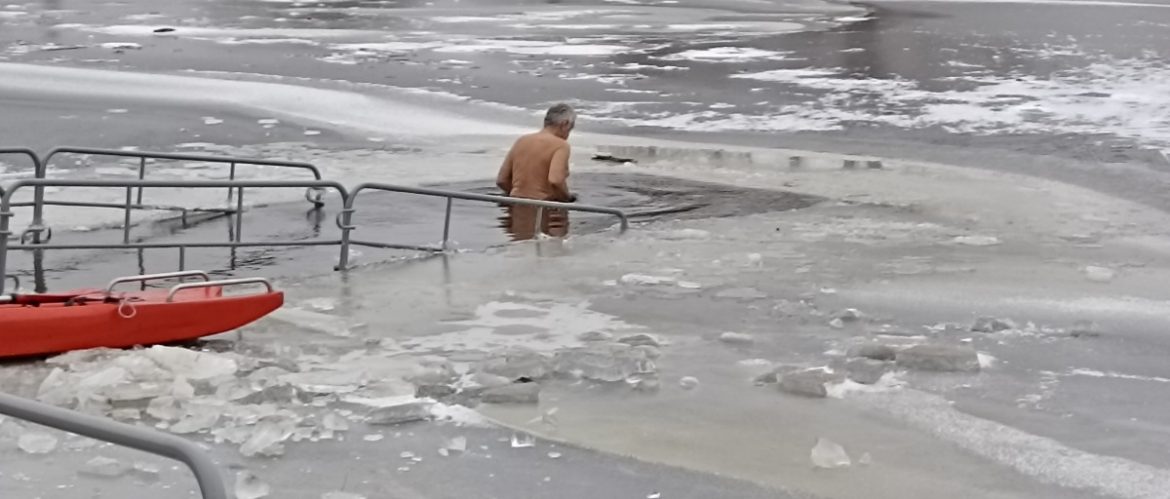 В прошлом году в Пинске, равно как и в Столине и Давид-Городке, традиционных ныряний в проруб не было — отменили из-за коронавируса. Но в этом году пинчанам удалось соблюсти традицию, несмотря на довольно теплую для января температуру (0..-2 градуса в течение 19 января).
